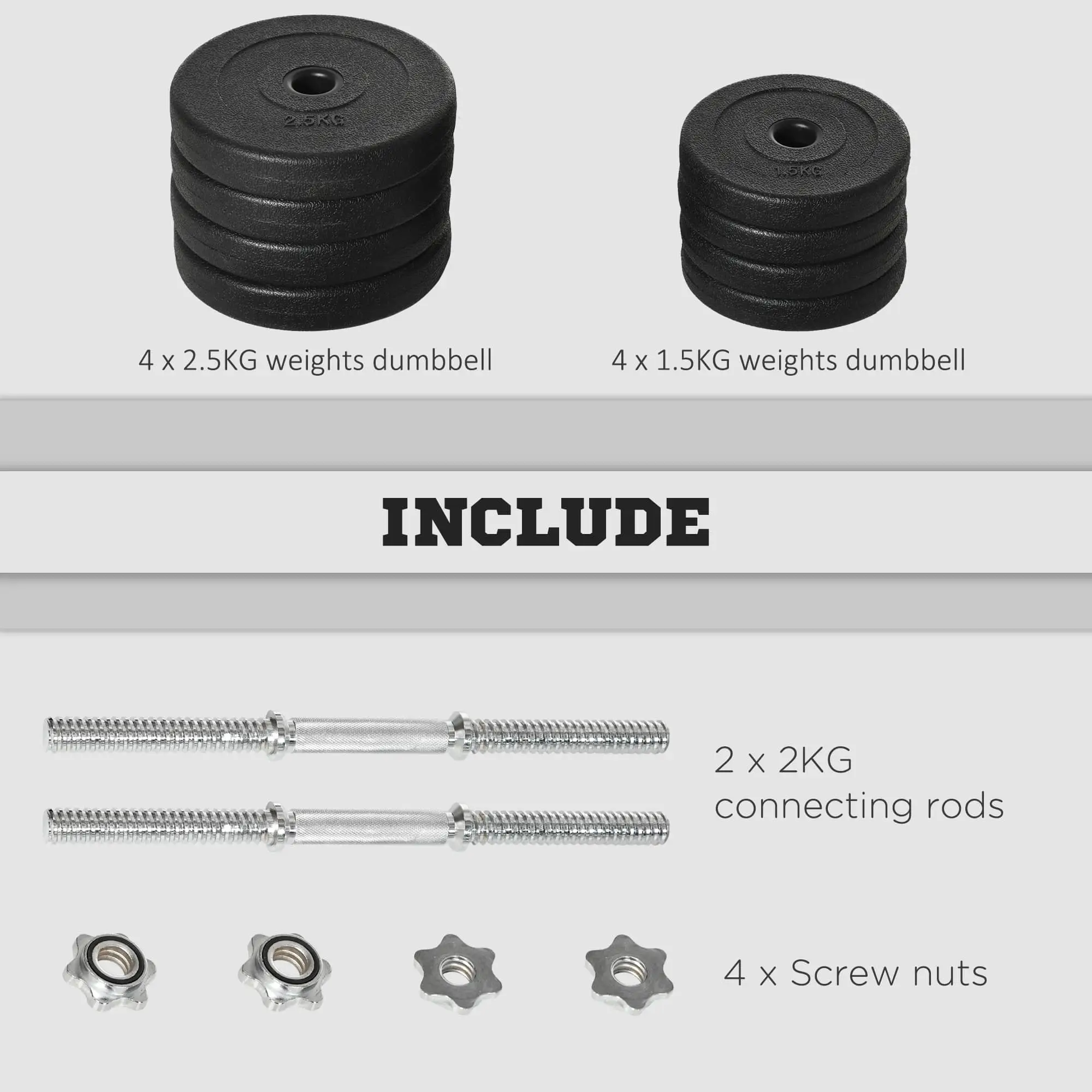 Adjustable Weight: Customize your workout with 4 x 2.5kg and 4 x 1.25kg plates, allowing for incremental weight changes.
