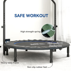 Anti-slip and safe: With rubber sleeves, this rebounder with handle is balanced and stable. Spring covers stops your feet getting caught by springs when using.