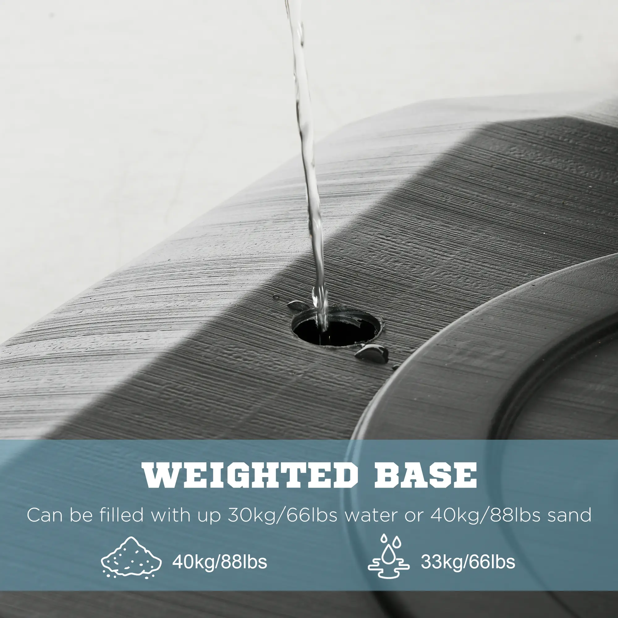 Base capacity: 30kg water or 40kg sand
