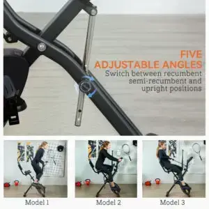 Adjustable Riding Positions: Switch between upright, semi-recumbent, and recumbent modes with five versatile bike positions. Includes built-in arm resistance bands to add upper-body movement to your session.