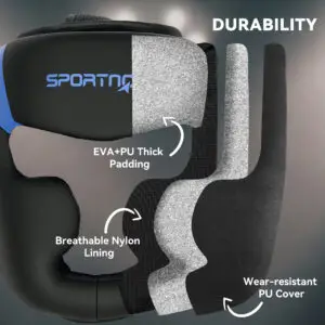 Breathable design: The boxing head gear includes ventilated top and sides with a quick-drying nylon lining, enhancing comfort and reducing sweat during workouts.